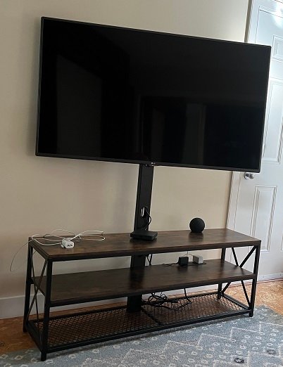 The television stand for the “Barn Suite” came this afternoon. It took all afternoon to assemble (see photo to the left). I can now see movies and series like the “Planet of the Apes” and “Lost” on the “BIG SCREEN”! I’ve been having problems watching these shows on my Amazon Fire Tablet, so this is now a thing of the past!