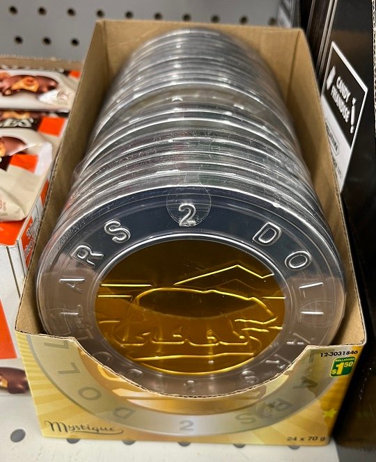 I picked up a chocolate “Toonie” for Katie and Bobby when I was at Dollarama this afternoon (see photo to the right).