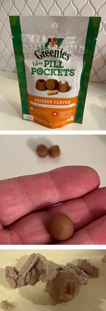 I still have one trick up my sleeve that I will tell you about tomorrow… It’s funny how giving meds to a dog is so much easier! Just put it in their food and they will “wolf” it down before even realizing it.