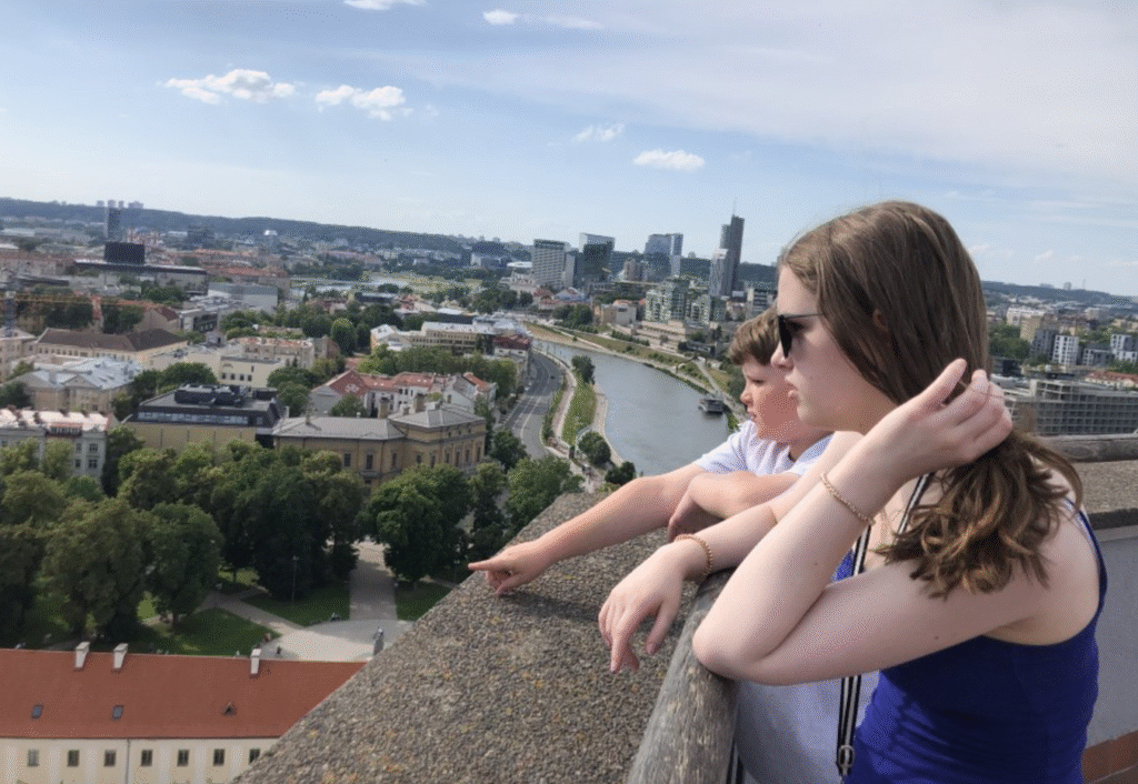 After she got home she took the kids to Gediminas Tower (see photo to the right). She remembered the Baltic Way, a peaceful political demonstration that occurred on 23 August 1989. Approximately two million people then joined their hands to form a human chain spanning 690 kilometers (430 mi) across the three Baltic states (Lithuania, Latvia, Estonia), which at the time were occupied and annexed by the USSR and had a combined population of approximately eight million. Her family was there.