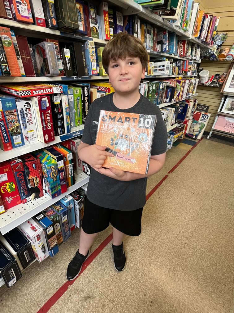 This afternoon the kids and I went out for an adventure about town. We thought we might end up at the “Miniatures Museum”, but “Thrifting” took over the day. Katie was explaining how Courtenay has mostly “old people” clothes, and the Thrifting stores here in Victoria are ideal for her. We went to the WIN Resale Shop first, where Katie bought a skirt, then to Value Village which was more downtown. We spent a lot of time here, and as Katie browsed Bobby and I went to look at the toy and game section. He picked up an “unopened” Smart 10 card game for only $7.99 (see photo to the right). Katie picked up a whole basket of clothes that came to about $120. There were no dressing rooms, but they have a generous return policy, so we may be returning some of them at their Courtenay location. I’m so proud of how Bobby held up while Katie shopped for clothes. Not exactly the perfectly fun activity for a 10-year old boy.