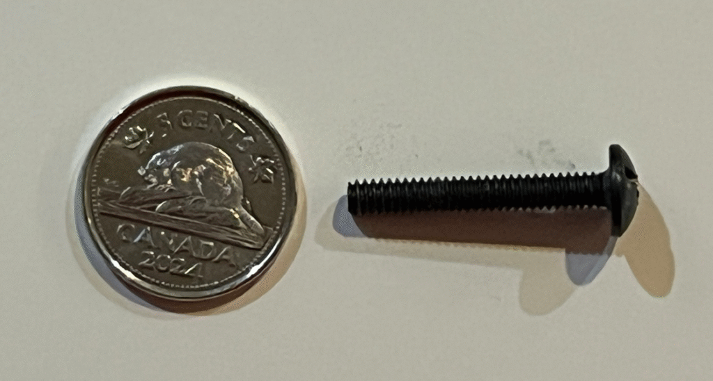 I’m on the lookout for a screw to afix the knob to the armoire in the office. They sell them in packages at Canadian Tire and Walmart, but I think Slegg’s Building Supplies sells them in loose quantities. I might try them out tomorrow so I’ll be sure to get the right size. I thought taking a photo of it next to a known reference object (see photo to the right) might be a good idea for ChatGPT to tell me exactly the dimensions, but it messed up with a “hallucination”… The technology is not there yet…