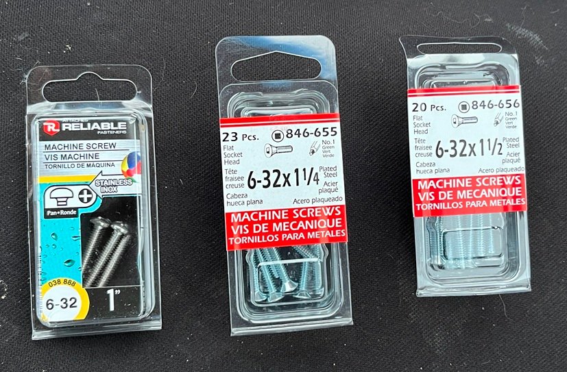 The screw that I picked up at Slegg’s Building Supplies the other day was the right width, but a little too short. I went to Home Depot and got some longer ones. As fate would have it, I could have bought just one screw if it was 1″ or shorter. For 1 1/4″ and 1 1/2″ lengths I had to buy packages (see photo to the right). No worries! I’m sure that we will use them around the property at some point.