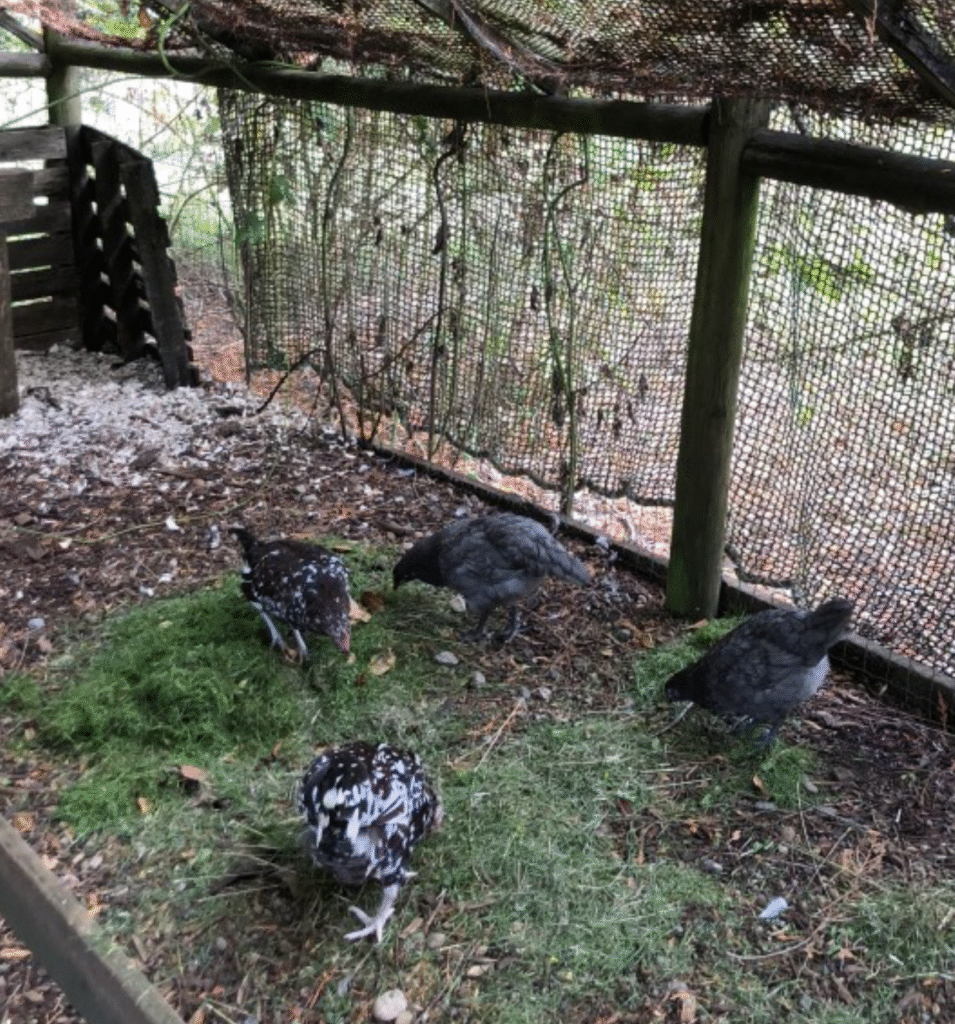 Our four hens are gradually getting used to their new home (see photo to the right). Valentine? He still freaks out from time-to-time!