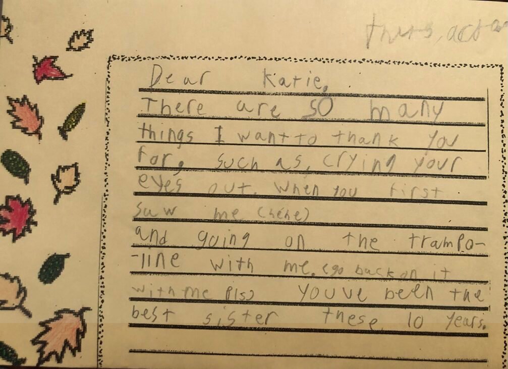 At Huband today the teacher asked the students to write a letter to someone. Bobby chose Katie, and what a nice sweet letter he wrote (see photo to the left).