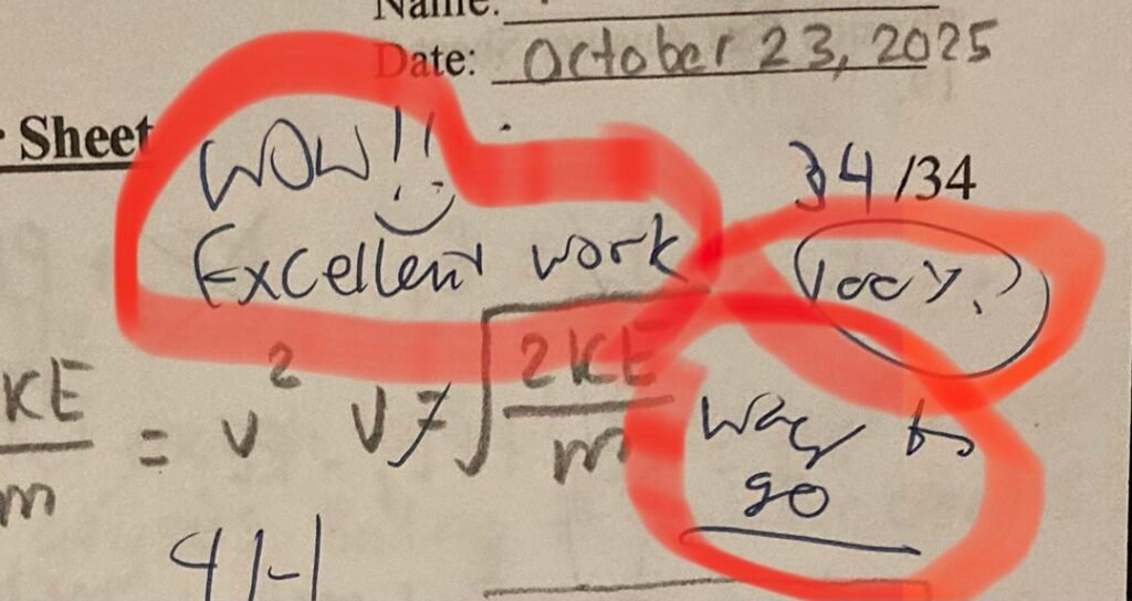 Katie is in a pretty good mood this evening. I’m sure that the good grades (see photo to the right) she is getting helps!