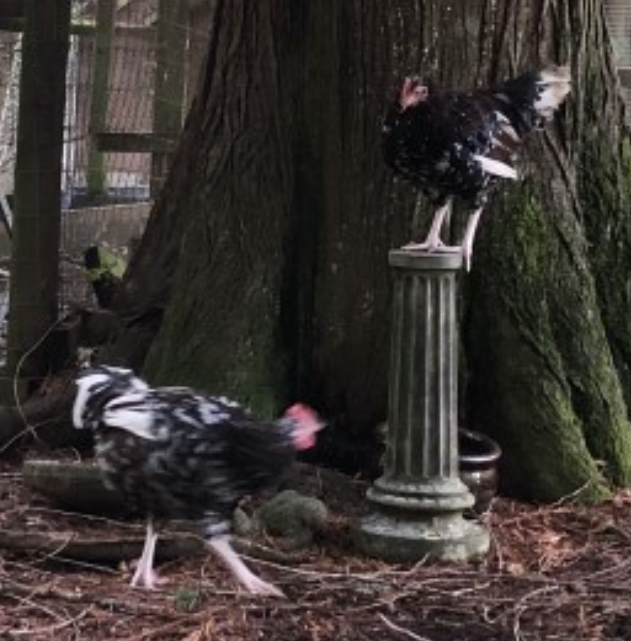 We let the chickens out this afternoon. There is post next to the coop that the chickens enjoy sitting on (see photo to the left).