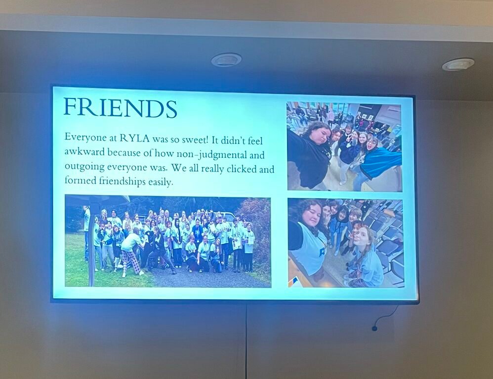 Katie and Soulina gave their presentation to the Rotary luncheon in Crown Isle today about their RYLA trip (see photo to the right). My wife and I had to give her permission to leave the school. Katie tells me that some kids leave the school and go to McDonalds and never come back. Her teacher Monica commented: “Such great presenters!”.