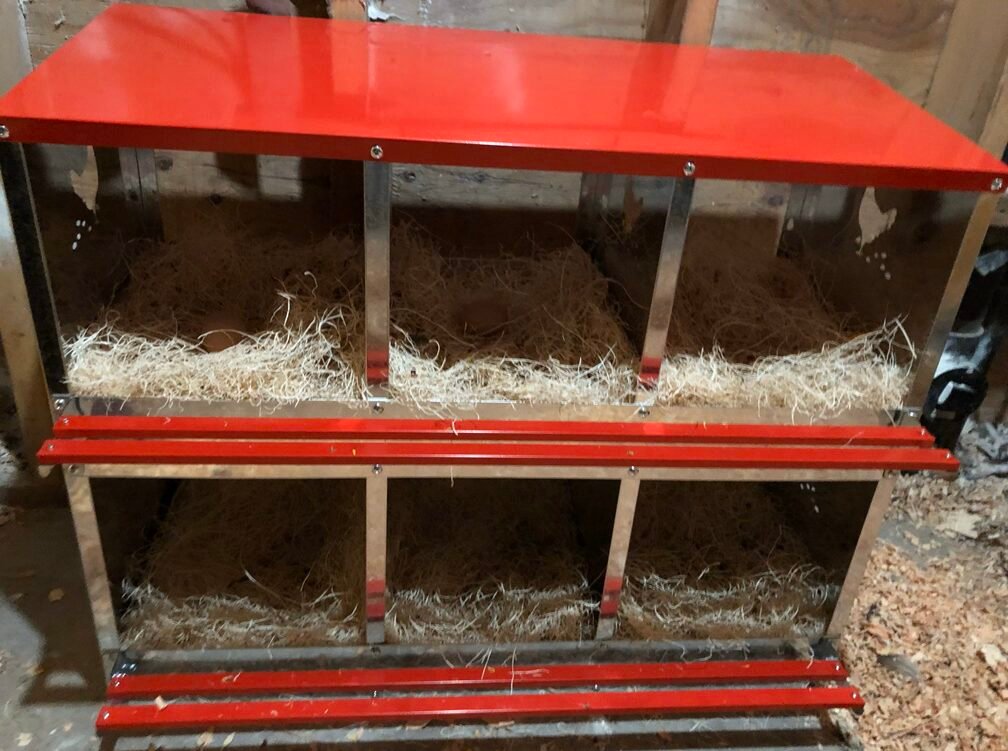 We have new nesting boxes for the chickens now (see photo to the left). They don’t have backs on them so I will have to figure out something to solve that problem.