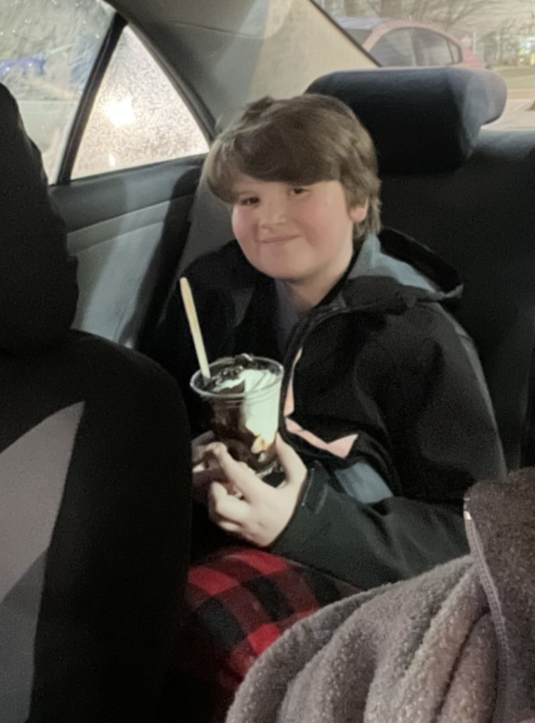 With Bobby’s teeth gradually getting back to order I thought I would treat him to Daddy/Son Chat #28 today! He had the choice of going to either Poke Page or Dairy Queen and he opted for Dairy Queen. You can see him enjoying a “Brownie & Oreo Cupfection” in the photo to the right.