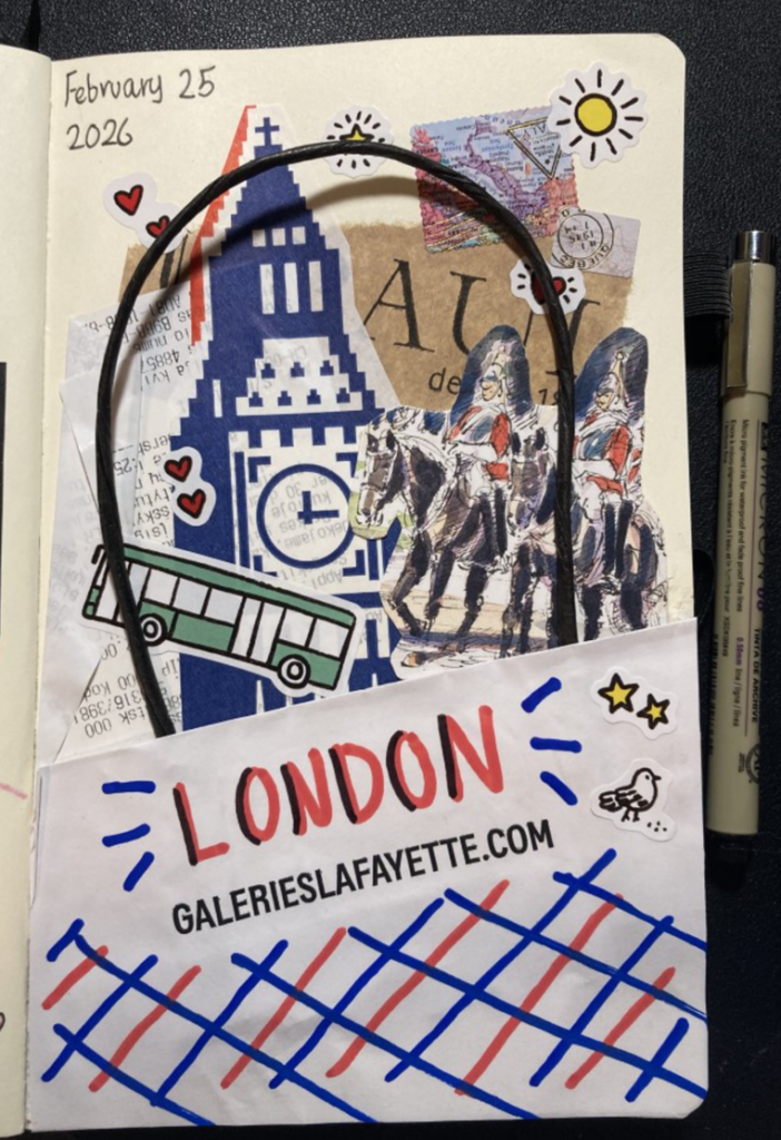 Katie found some time today to do some journaling on the London trip last summer (see photo to the left).