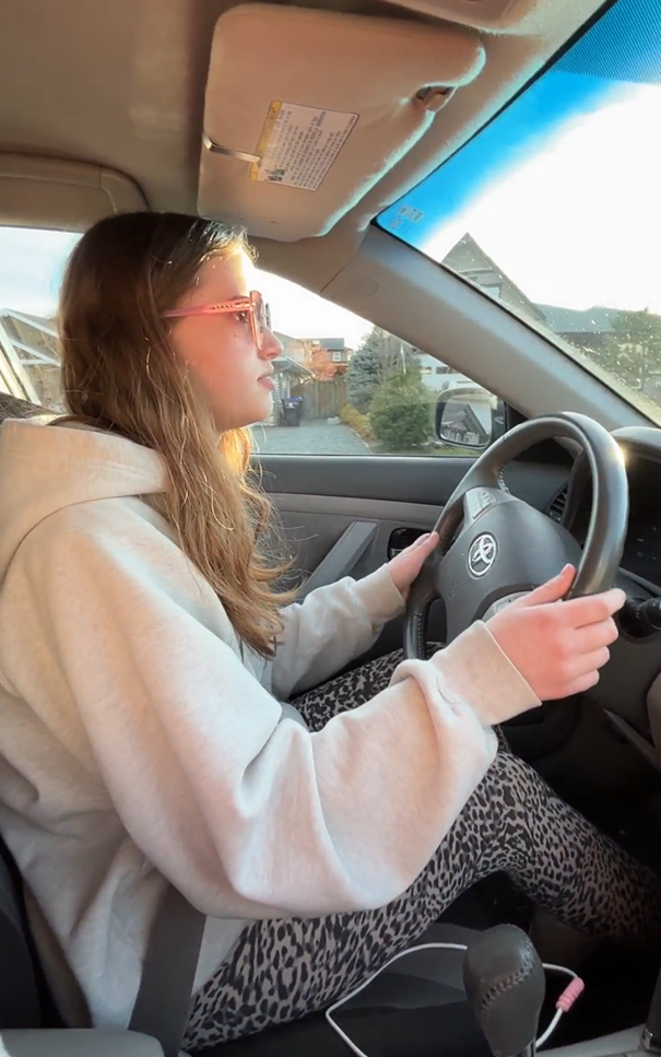 After a quick drive around Comox we ended up at the subdivision behind the Comox Quality Foods and Katie took over driving (see photo to the left). She practiced backing up and turning around. From there we went to Crown Isle for some more subdivision driving. It was getting late so I drove home after that. Quite a successful first day of driving the Camry!