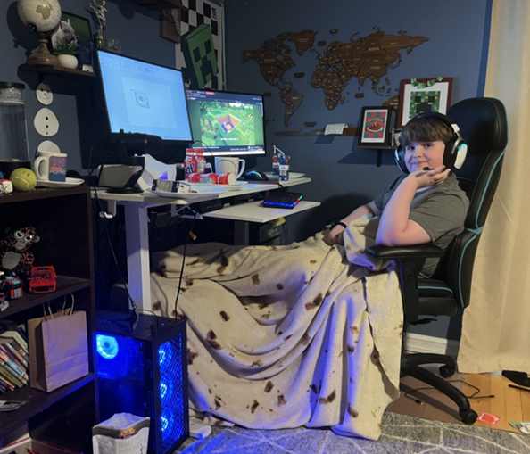 Bobby was up at 4 am this morning so he will need a nap today! You can see his “gaming setup” in the photo to the right!